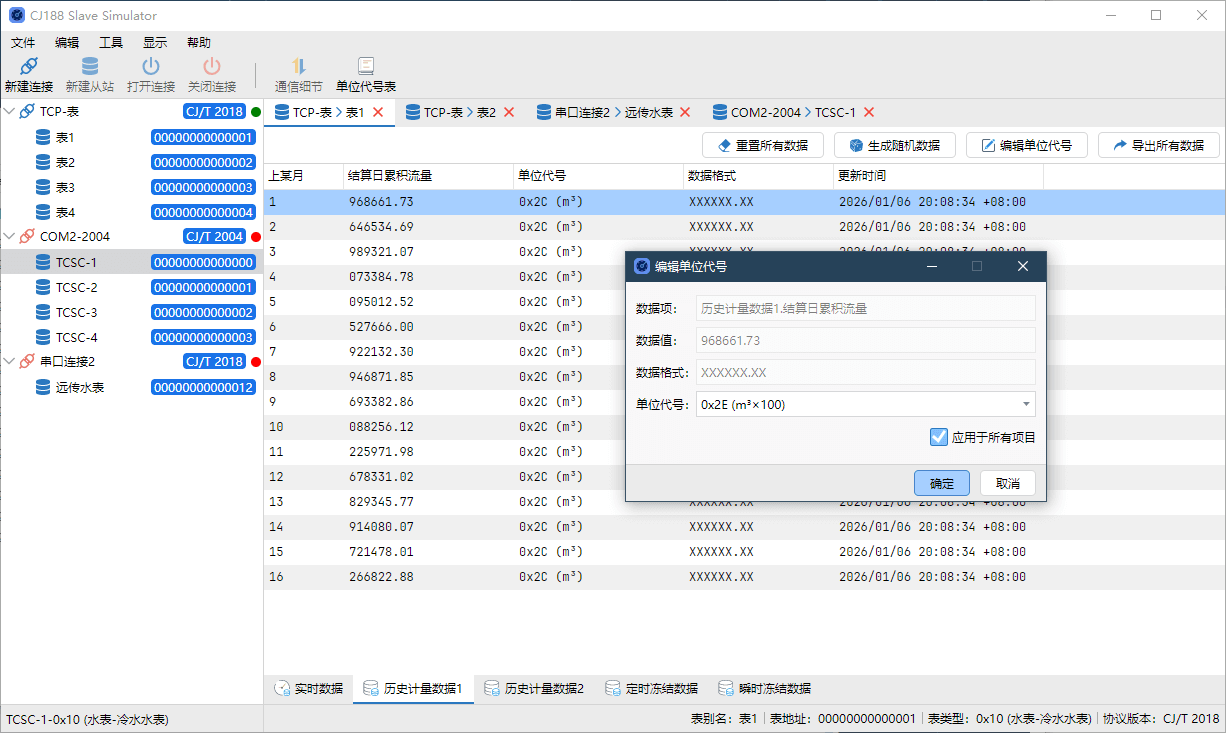- 支持通过串口和 TCP 模拟 CJ/T188 设备。